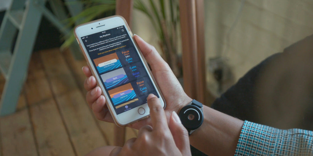 Use the doppel app to take your resting heart rate then try the five preset rhythms to feel relaxed, calm, focused, alert or energized. You can edit these presets, or create your own rhythms. Sync one rhythm at a time to the doppel wristband via Bluetooth.
