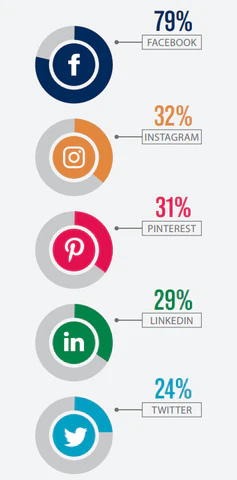 The percentage of US adults on Facebook, Instagram, Pinterest, LinkedIn and Twitter