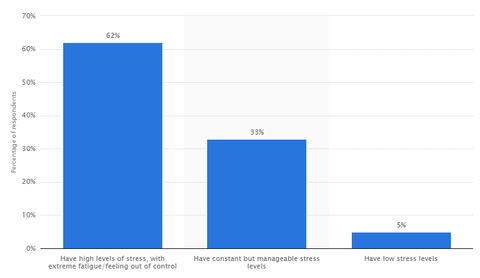 Workplace stress is a bigger problem than many of us realise. Here are three charts which demonstrate the scale of the problem in North America and one statistic which illustrates the situation in the UK.