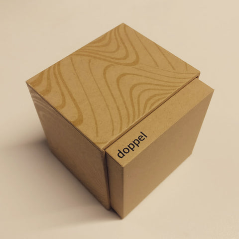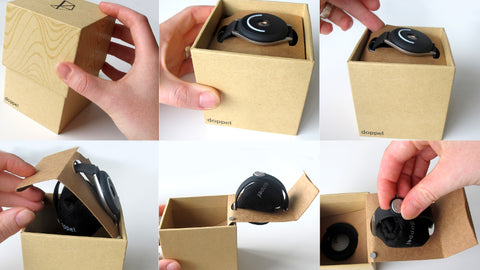 Initially we wanted a slim box that presented doppel flat. We thought that packing that could slip through a letterbox was a great idea! However as doppel is a premium product our consumers need to sign for it - so we abandon that idea as that shape is a poor use of space when shipping. Shipping a cube is the most efficient form for us to send doppel, the financial and environmental a factors are an important consideration for large scale production and distribution.